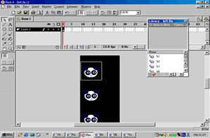 開啟 flash 項目欄 首先, 你須要開啟flash原始檔 left.fa, 你可以看見有4個熊貓按鈕在項目欄上。
