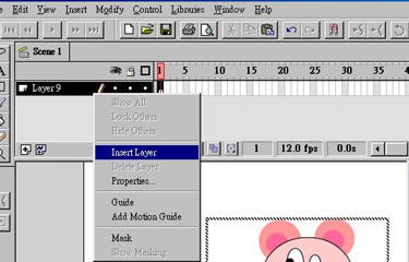 點擊你右面的滑鼠鍵,選擇 insert layer 加入新的工作層給將加入的聲音檔之中。
